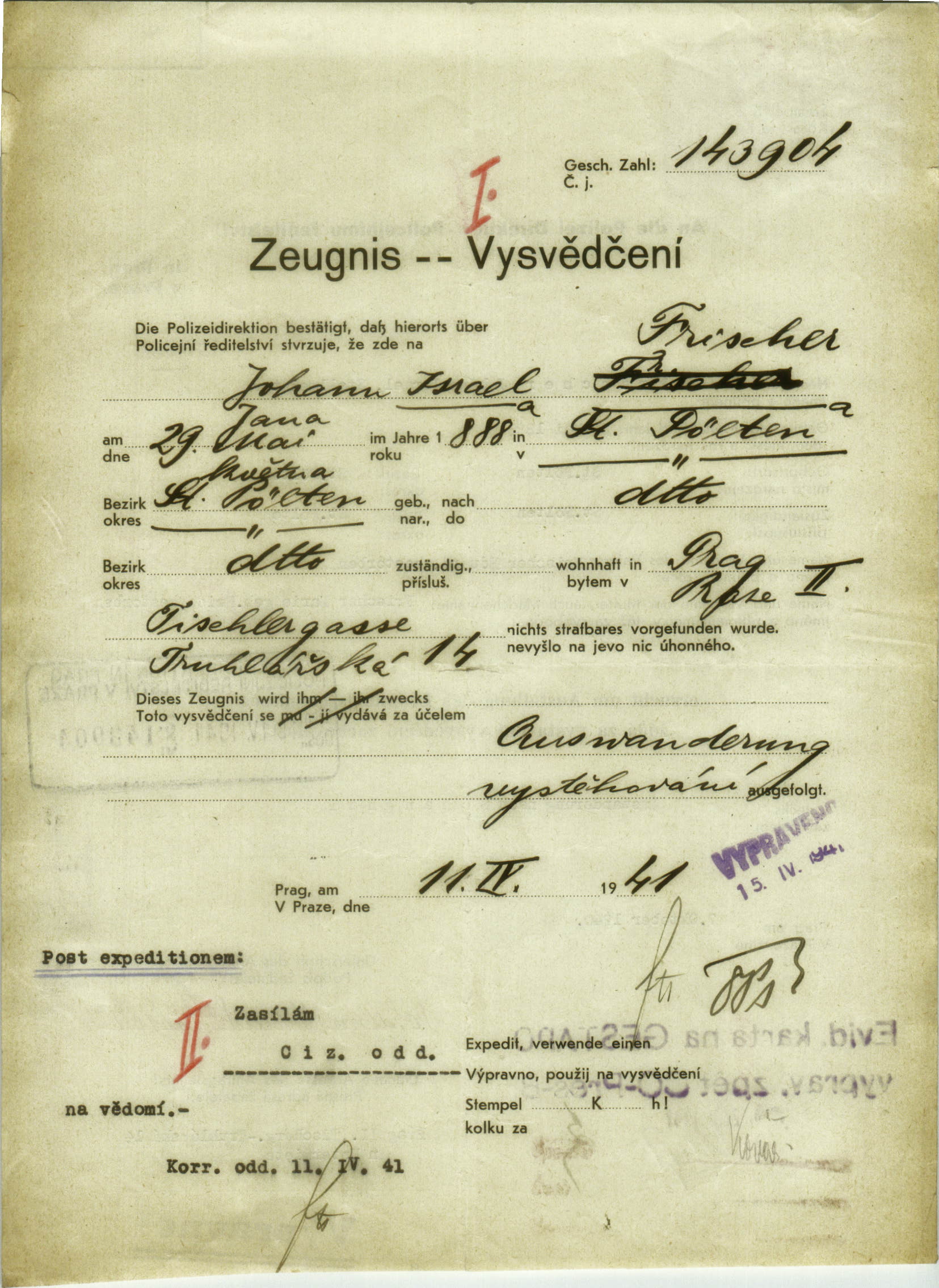 Frischer Jan: Vysvědčení zachovalosti
