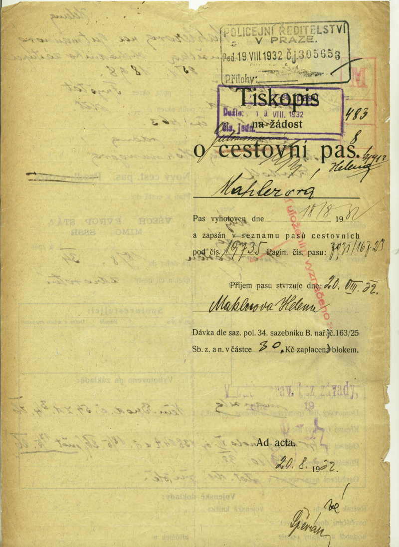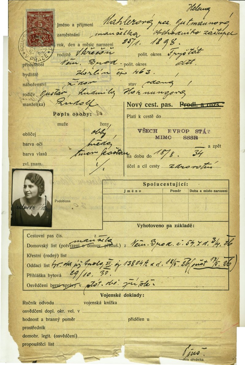 Fuchsová Helena: Žádost o vydání cestovního pasu