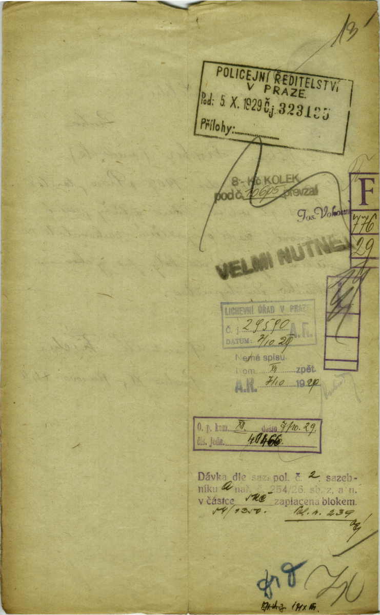 Fischer Vilém: Žádost o vystavení vysvědčení zachovalosti
