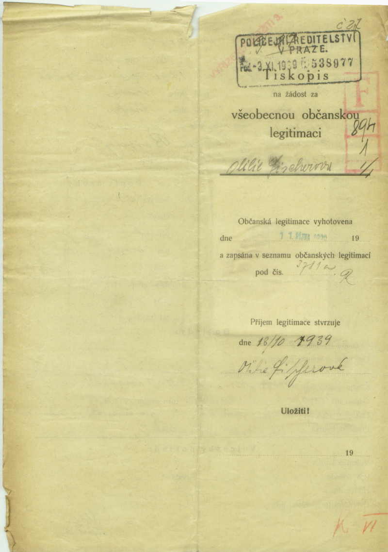 Fischerová Otilie: Žádost o vydání občanské legitimace