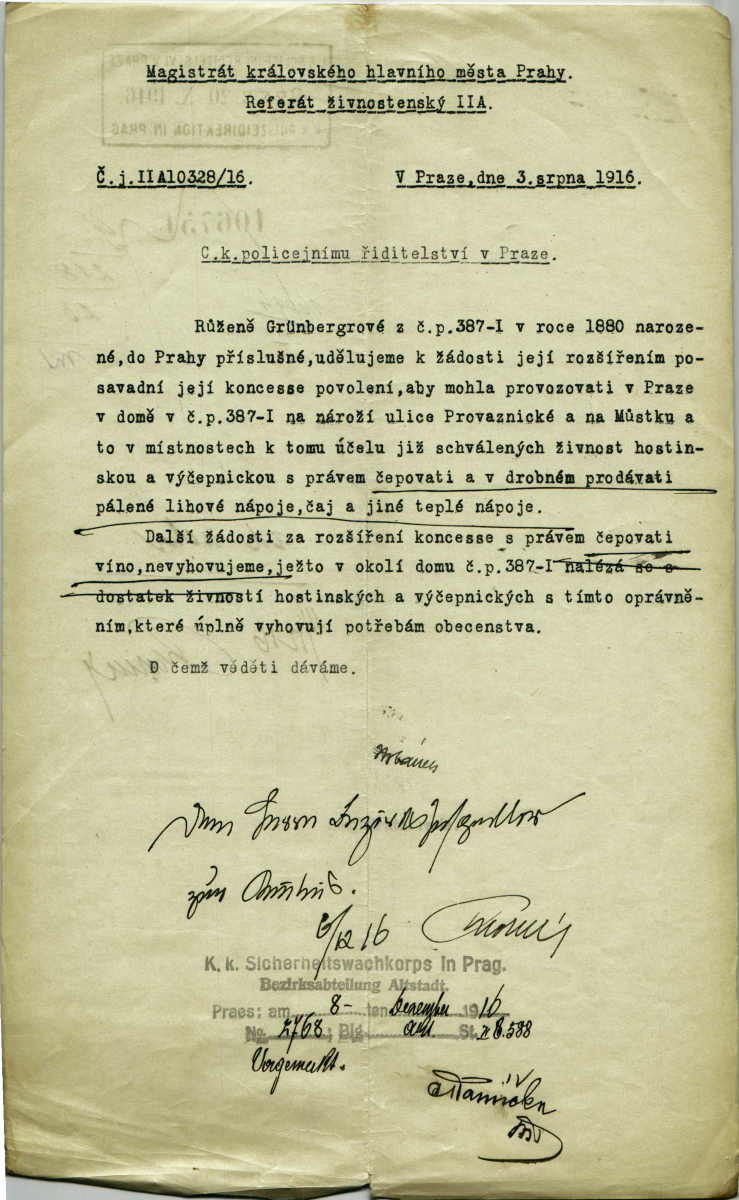 Grünbergerová Růžena: Vyjádření k žádosti o rozšíření koncese