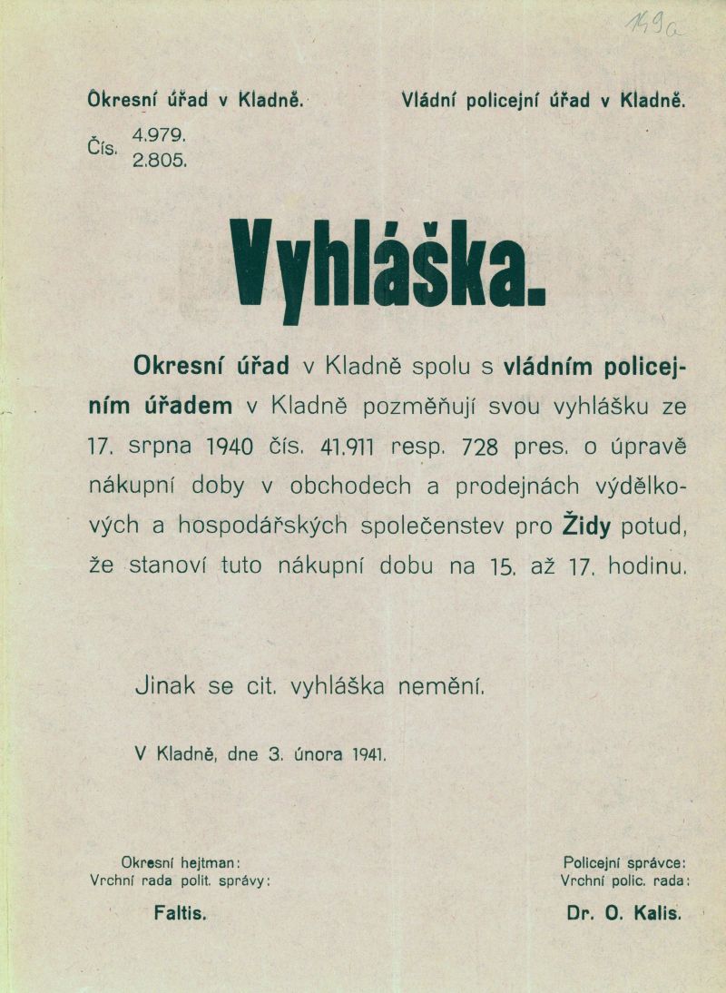 Zpřísnění omezení nákupní doby pro Židy v Kladně