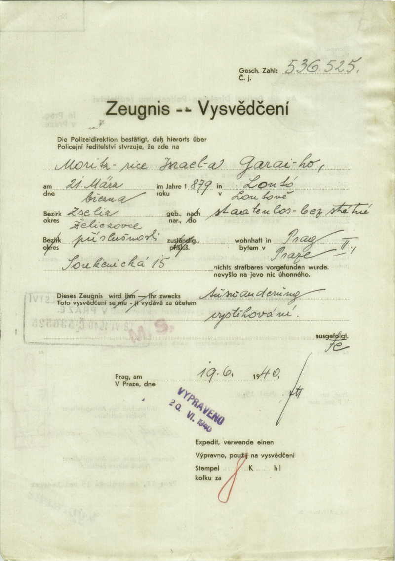 Garai Moritz: Vysvědčení zachovalosti