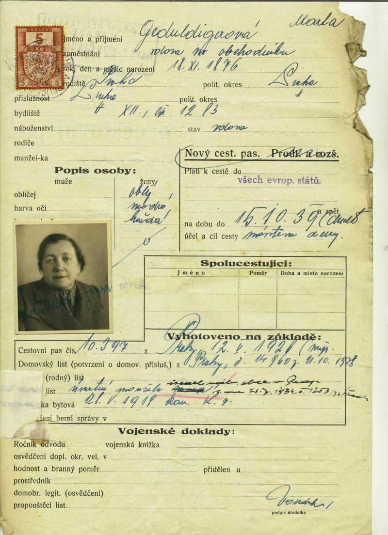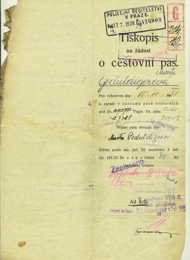 Geduldigerová Marta: Žádost o vydání cestovního pasu