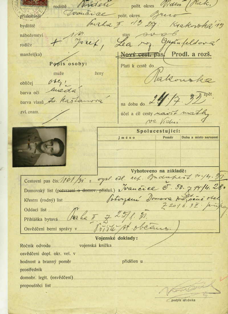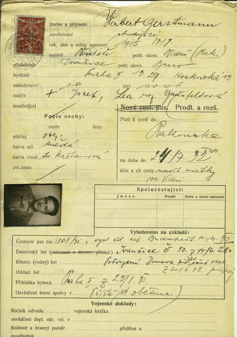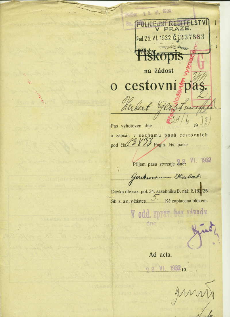 Gerstmann Herbert: Žádost o změnu v cestovním pasu
