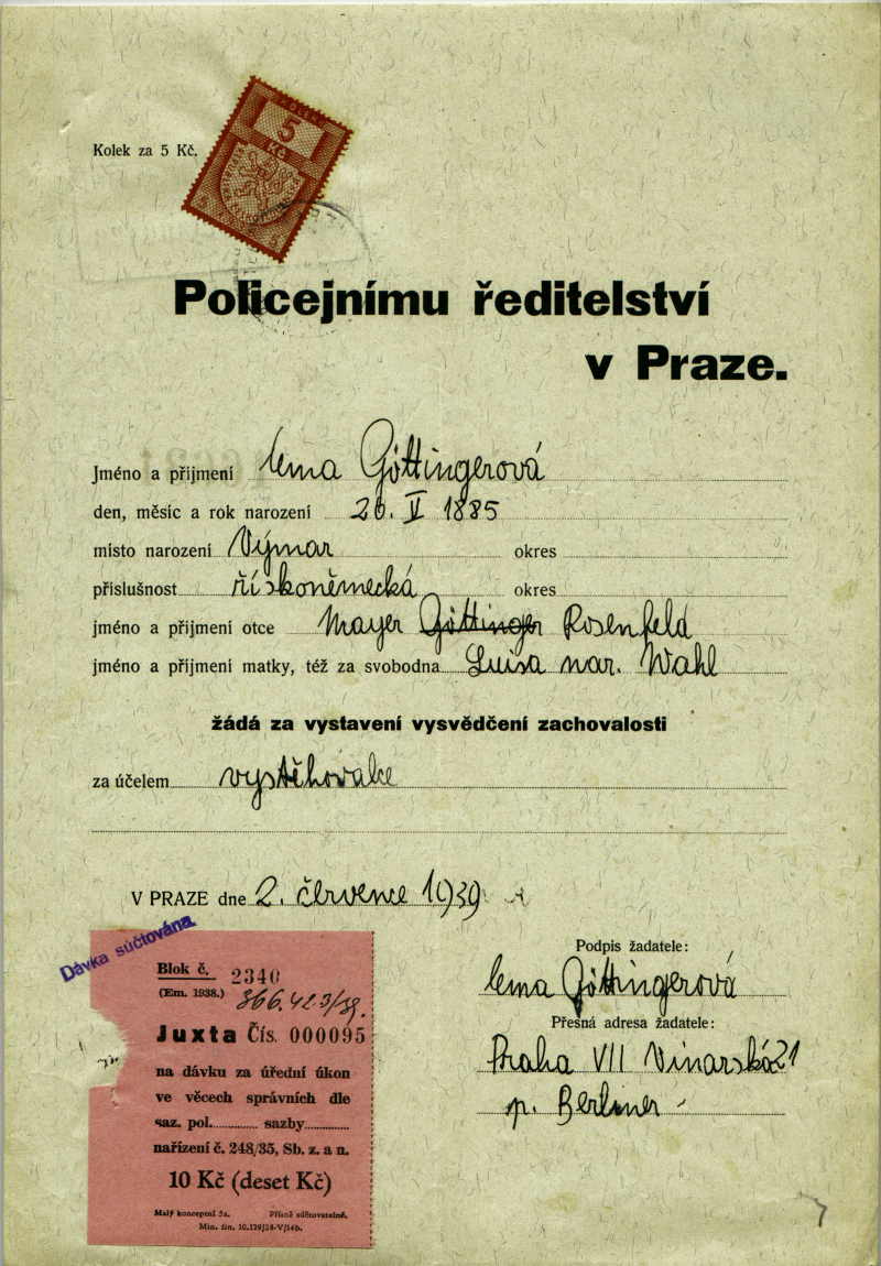 Göttingerová Emmy: Žádost o vystavení vysvědčení zachovalosti