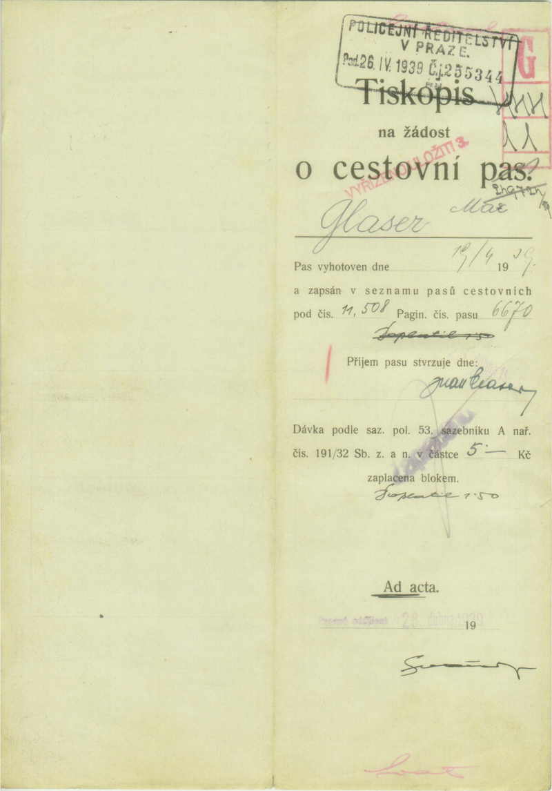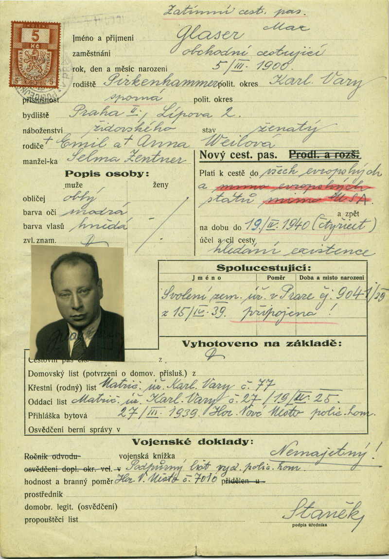 Glaser Max: Žádost o vydání prozatímního cestovního pasu