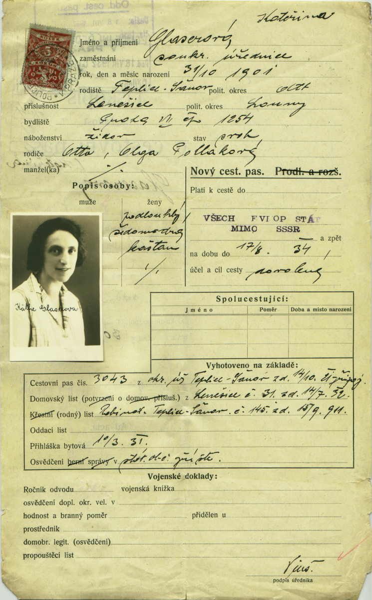 Glaserová Kateřina: Žádost o vydání cestovního pasu