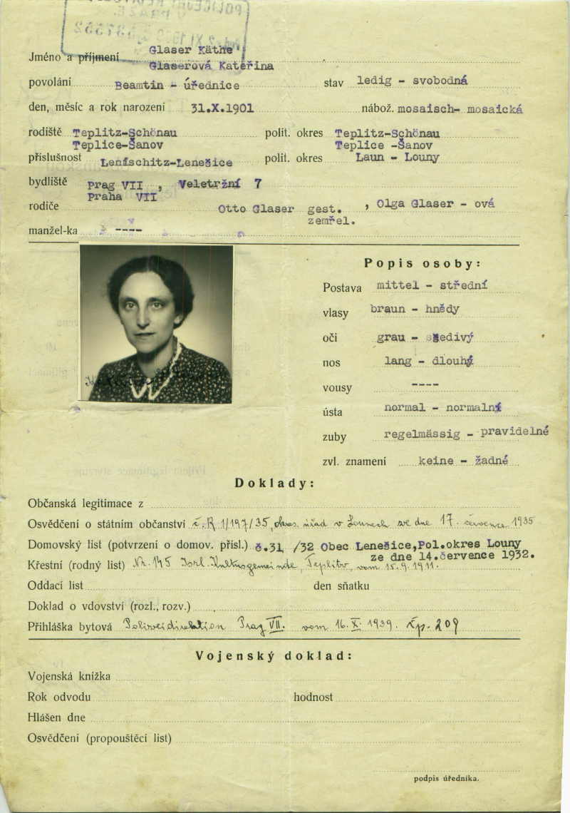 Glaserová Kateřina: Žádost o vydání občanské legitimace