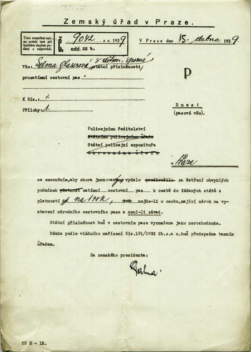 Glaserová Selma: Šetření ve věci vydání prozatímního cestovního pasu