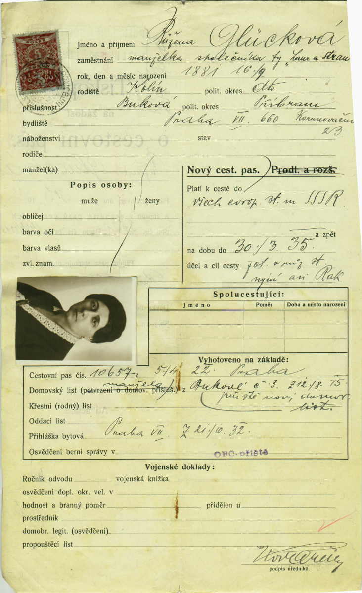 Glücková Růžena: Žádost o vydání cestovního pasu