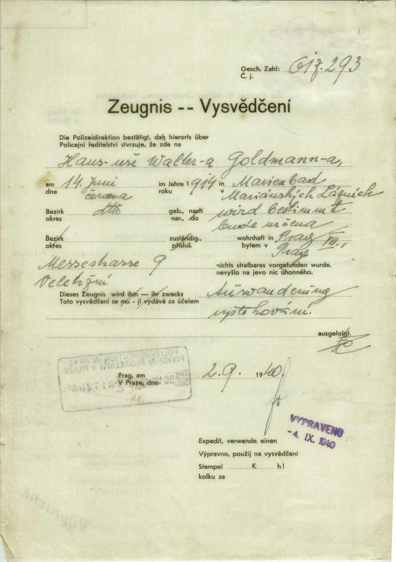 Goldmann Hanuš: Vysvědčení zachovalosti
