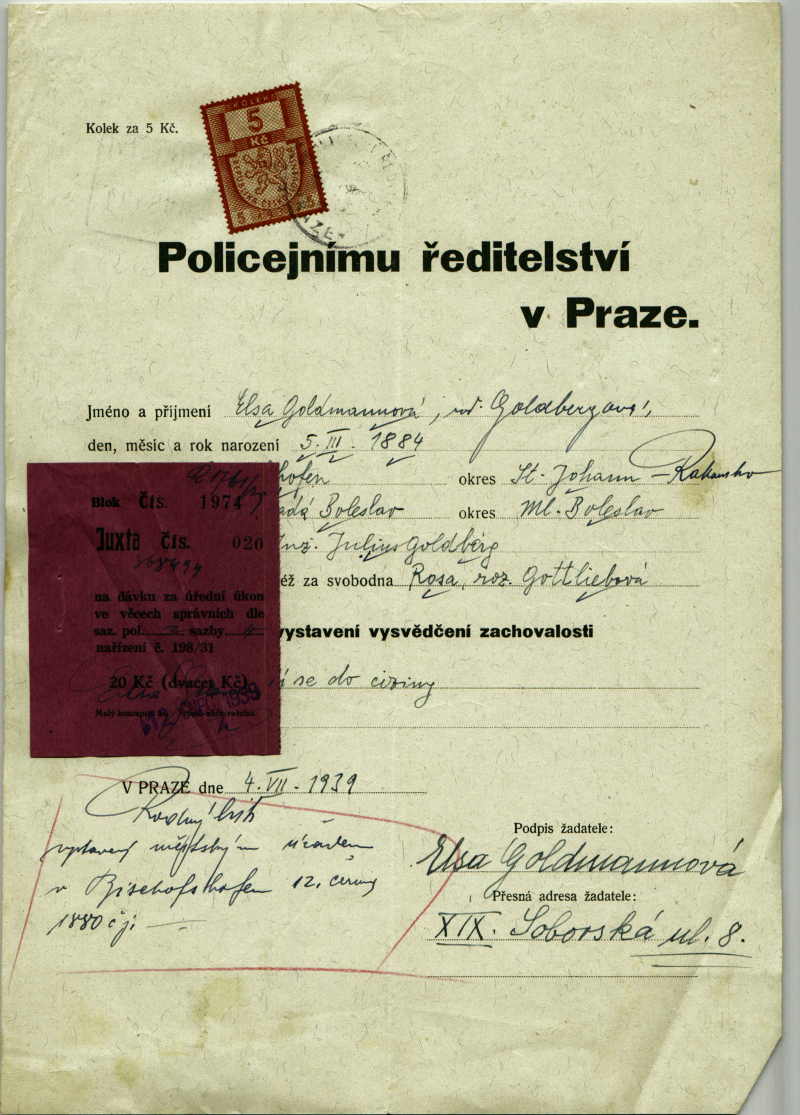 Goldmannová Elsa: Žádost o vystavení vysvědčení zachovalosti