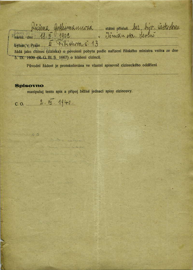 Gottesmannová Růžena: Žádost o povolení pobytu