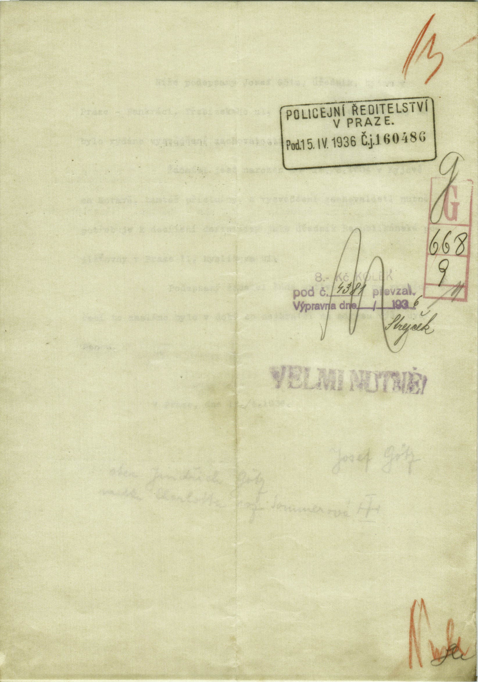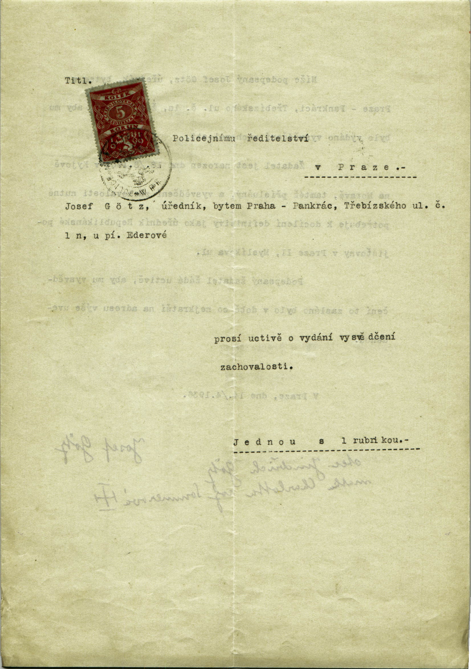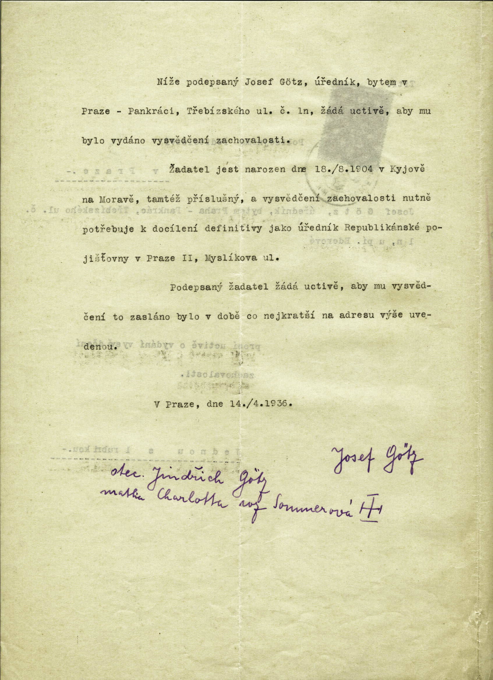Götz Josef: Žádost o vystavení vysvědčení zachovalosti