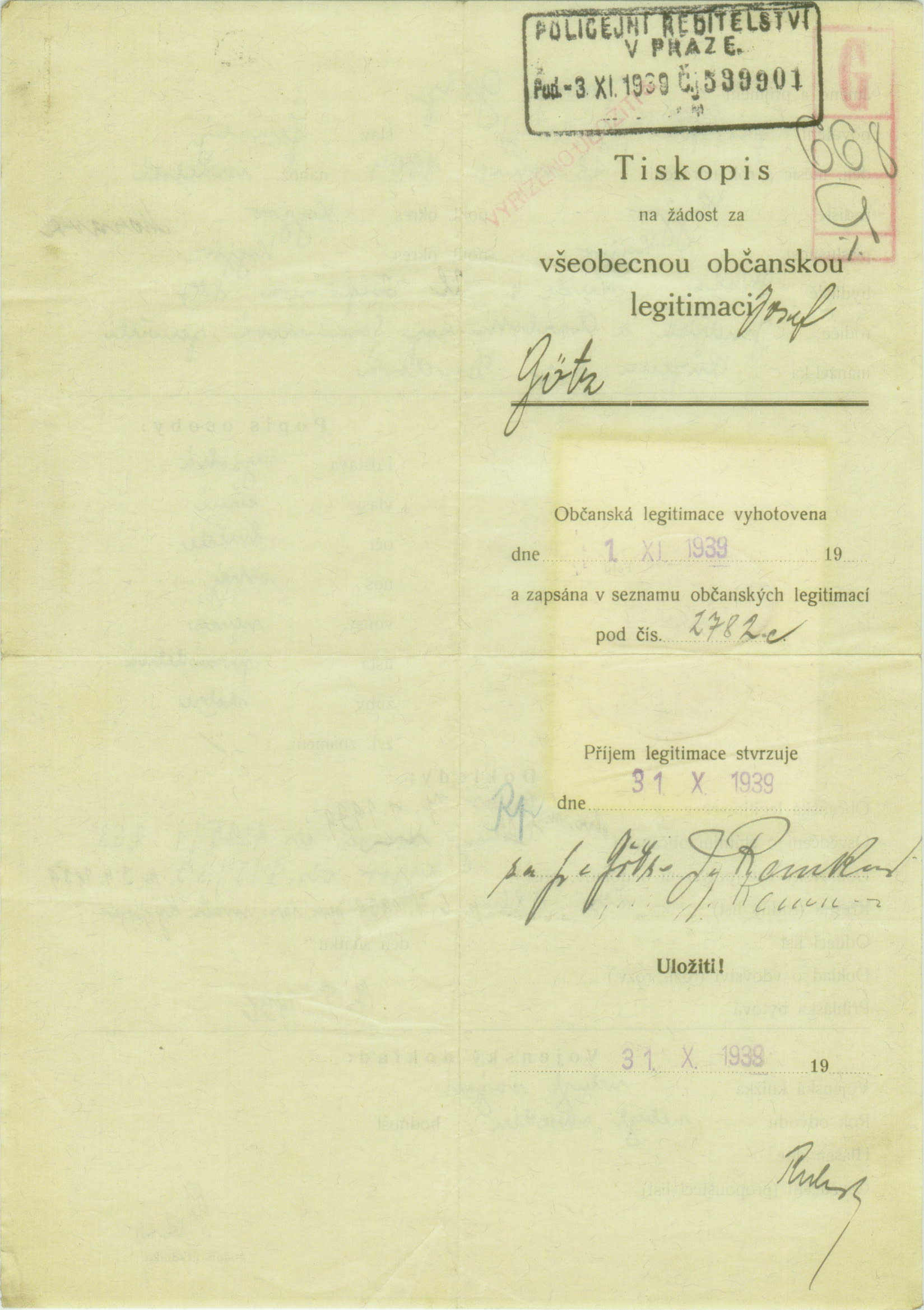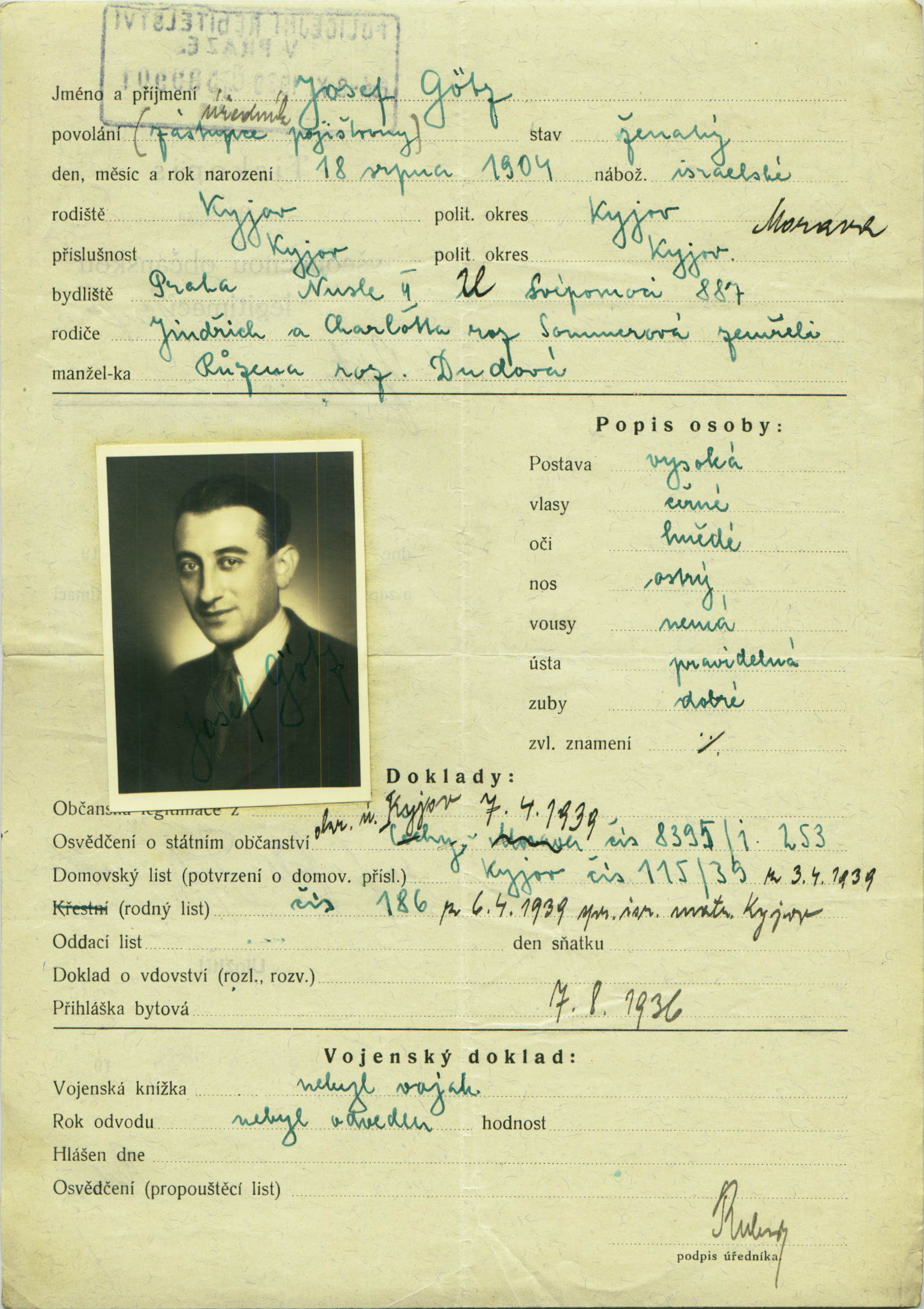 Götz Josef: Žádost o vydání občanské legitimace