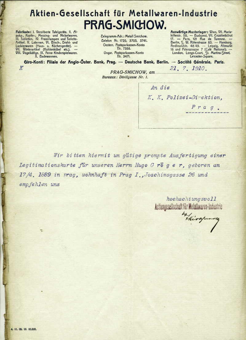 Gröger Hugo: Žádost o vydání občanské legitimace