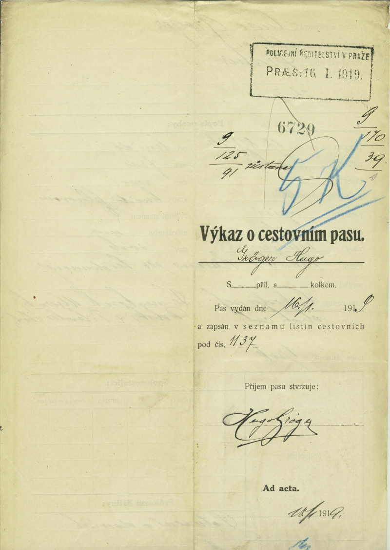 Gröger Hugo: Žádost o vydání cestovního pasu
