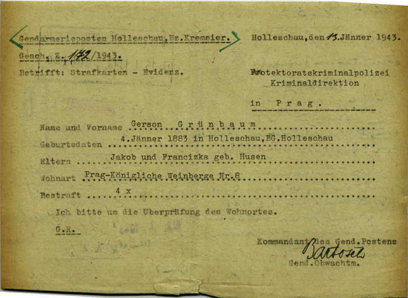 Grünbaum Gerson: Šetření o pobytu odtransportovaných Židů