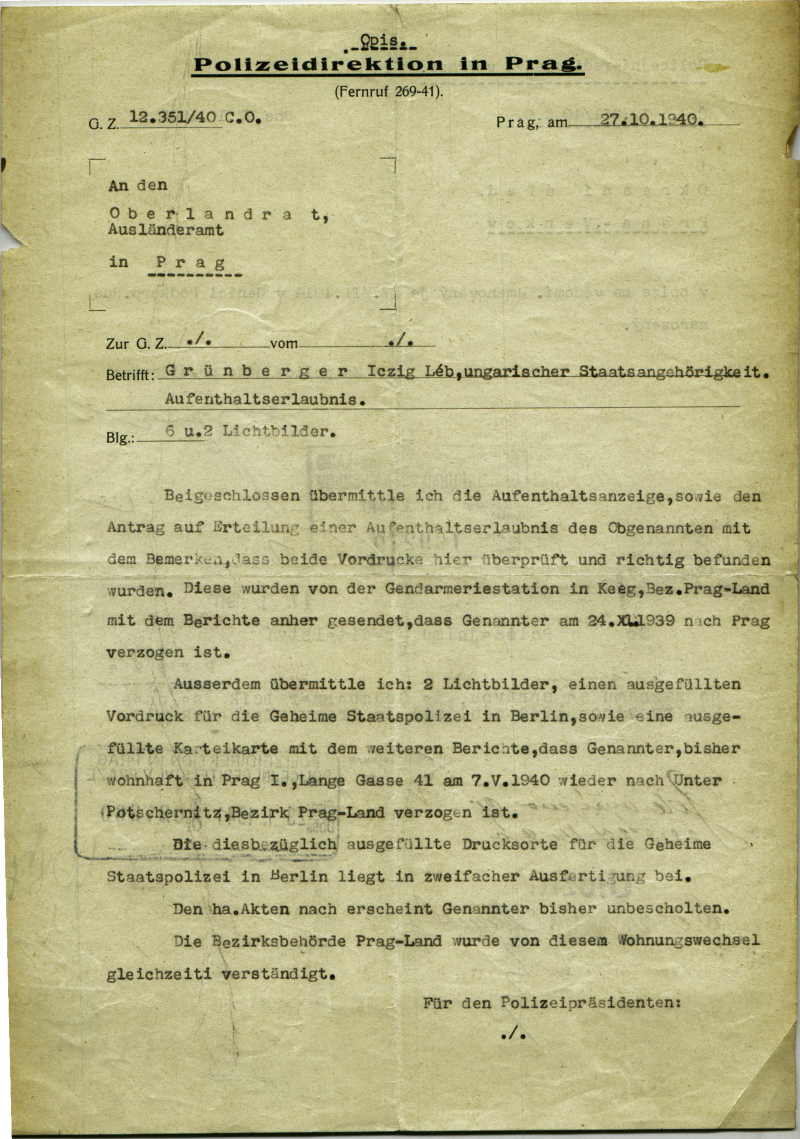 Grünberger Jeig: Žádost o povolení pobytu