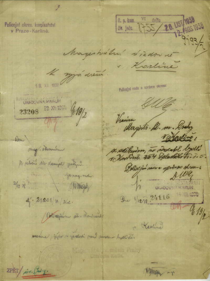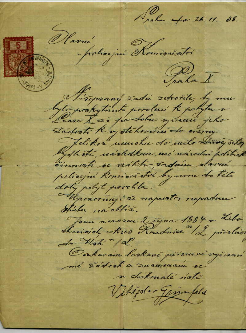Grünfeld Siegfried: Žádost o povolení pobytu
