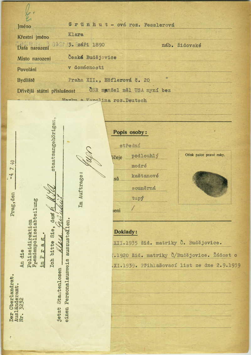 Grünhutová Klára: Žádost o vydání občanské legitimace