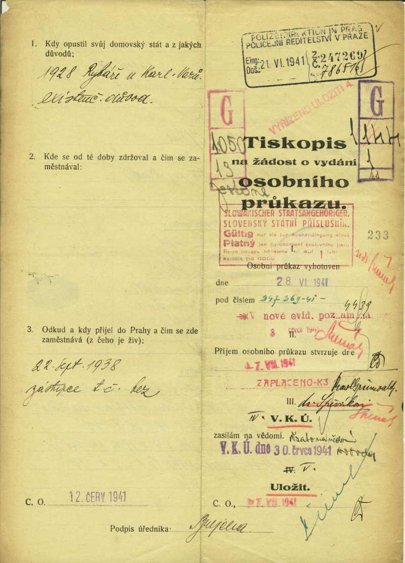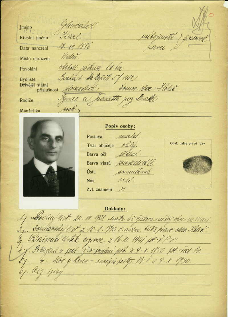 Grünwald Karel: Žádost o vydání občanské legitimace