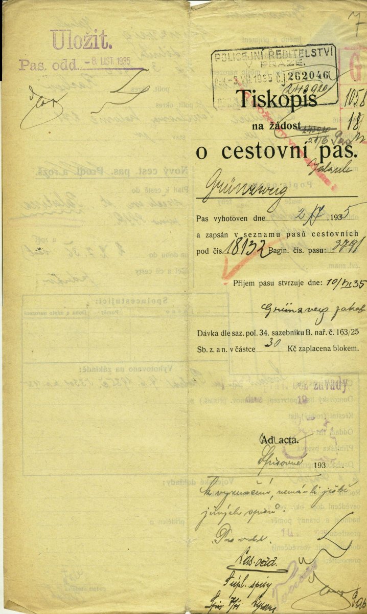 Grünzweig Jakob: Žádost o vydání prozatímního cestovního pasu