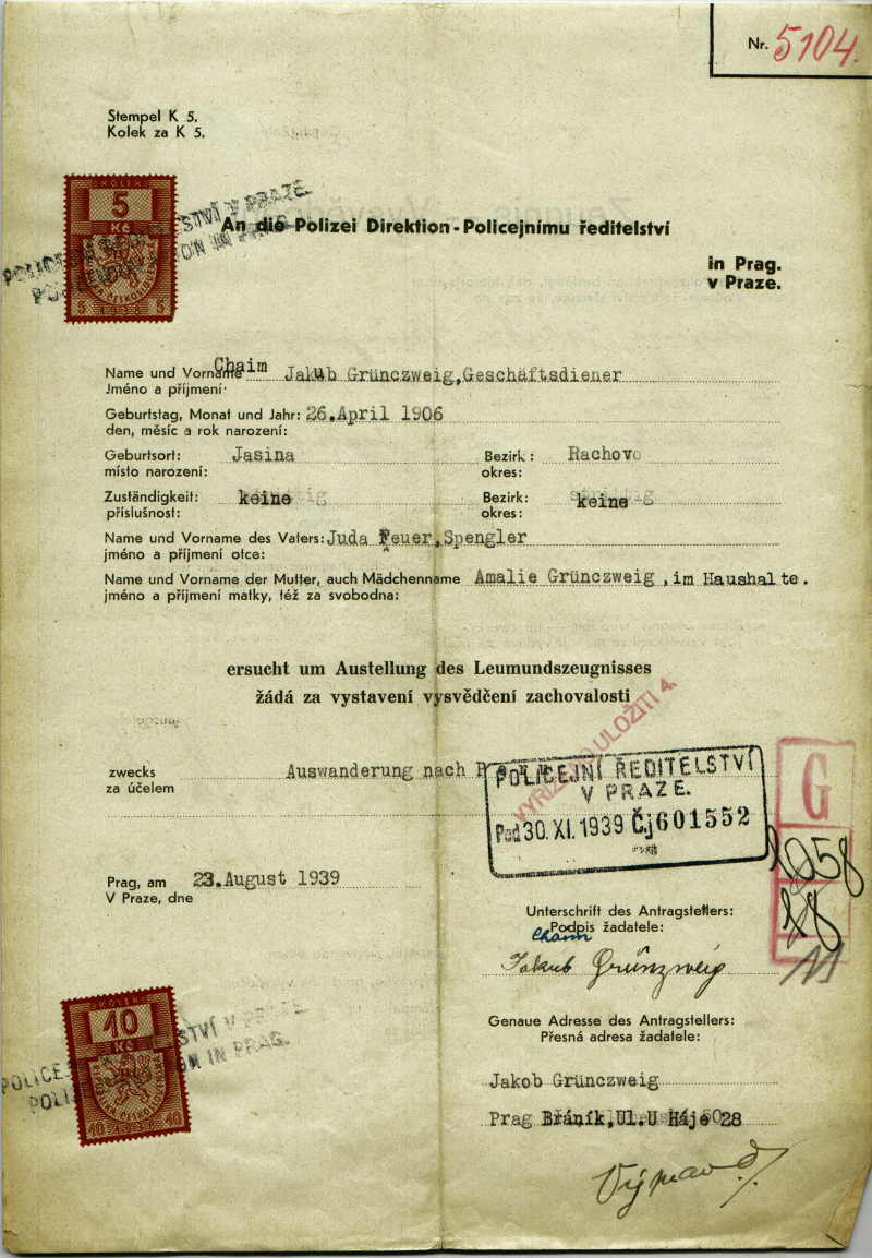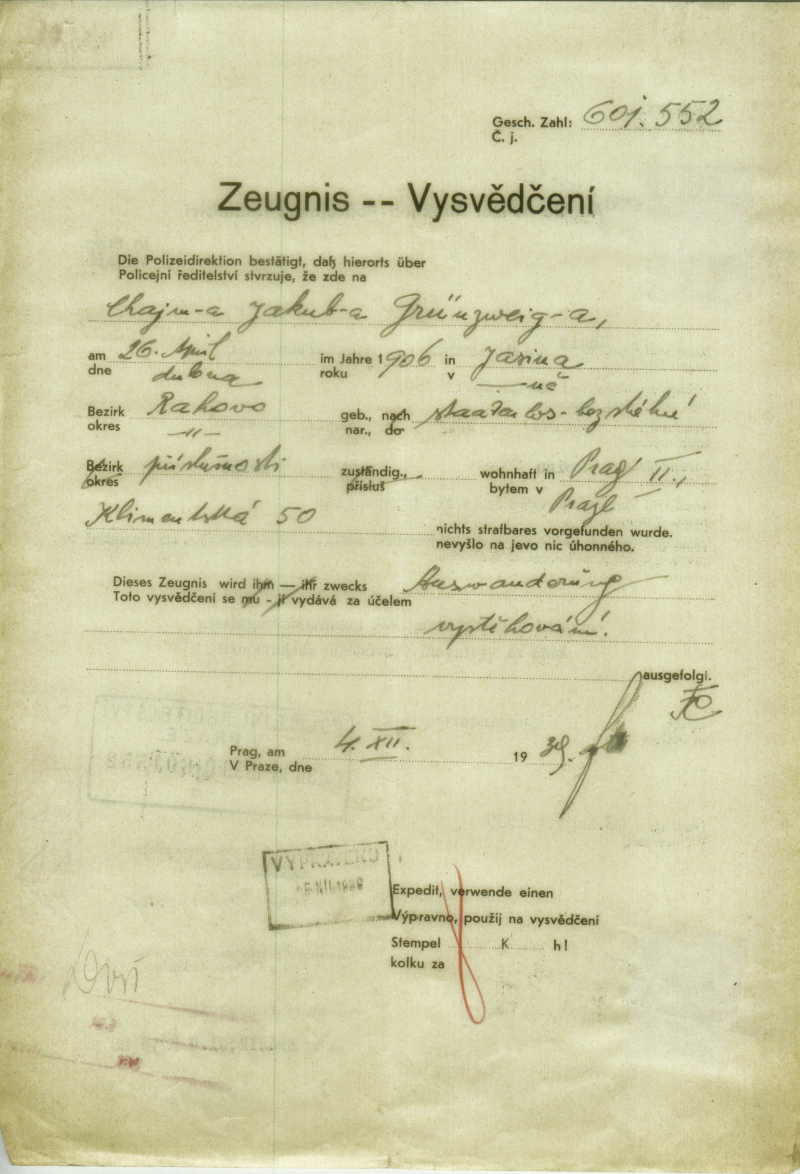 Grünzweig Jakob: Vysvědčení zachovalosti