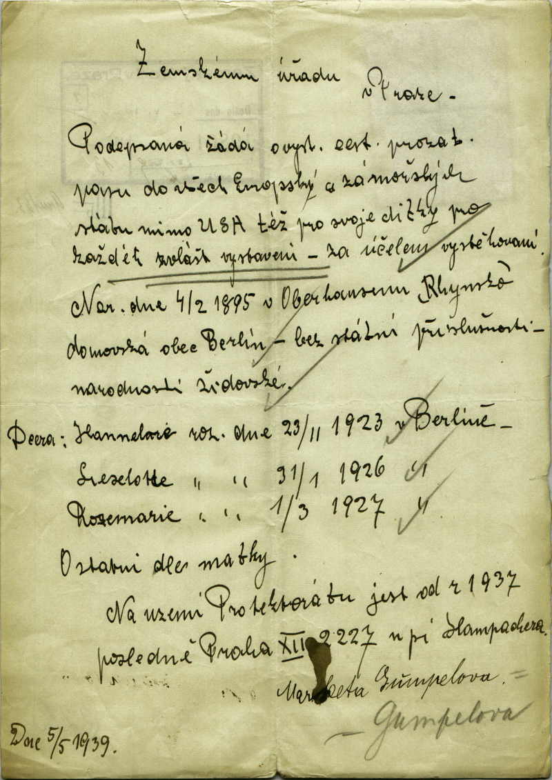 Gumpelová Gréta: Žádost o vydání prozatímního cestovního pasu