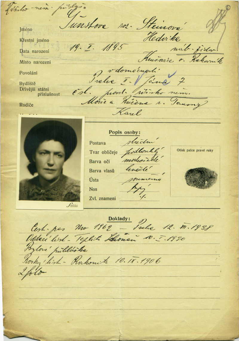 Gunstová Hedvika: Žádost o vydání občanské legitimace