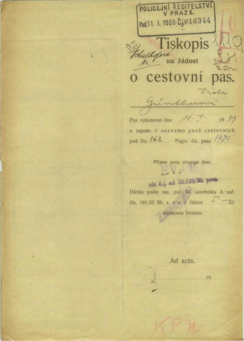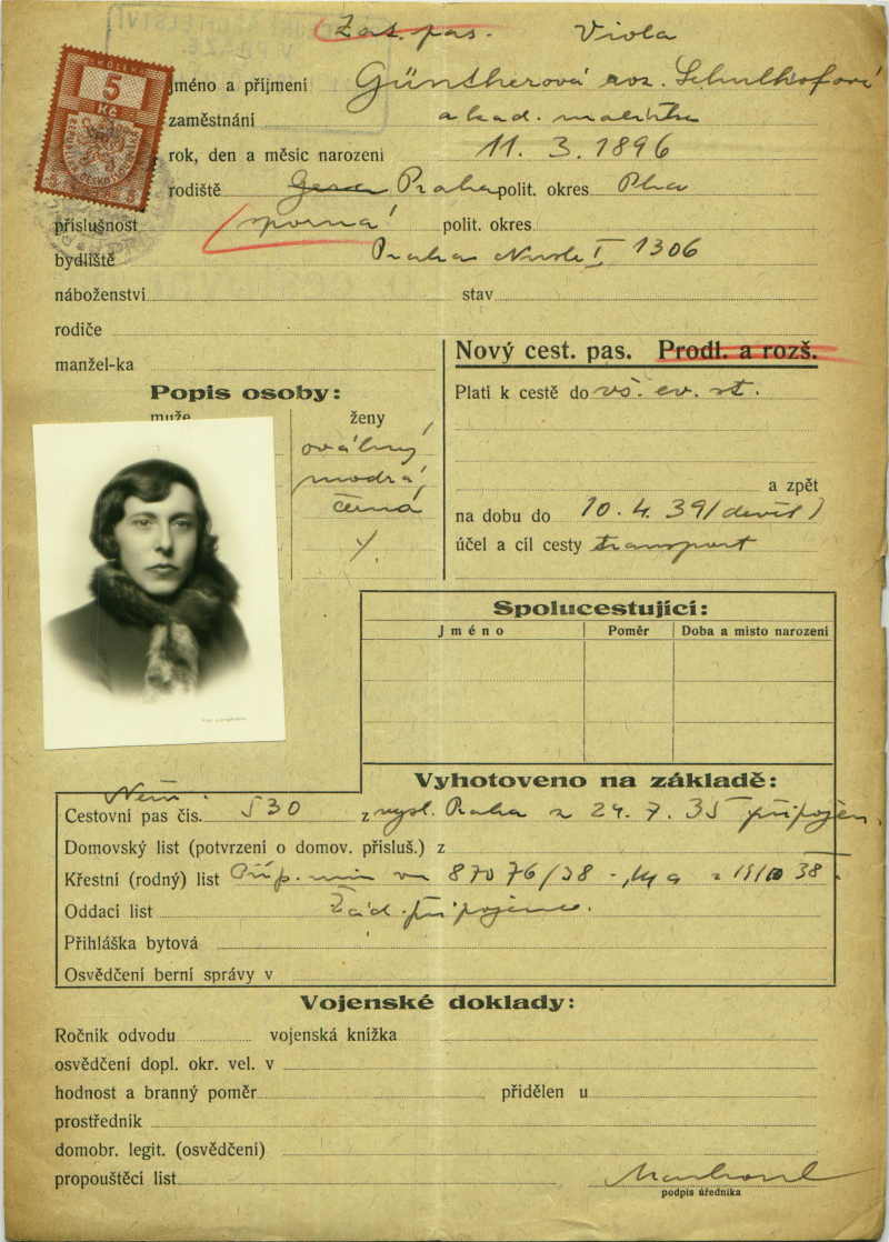 Güntherová Vila: Žádost o vydání prozatímního cestovního pasu