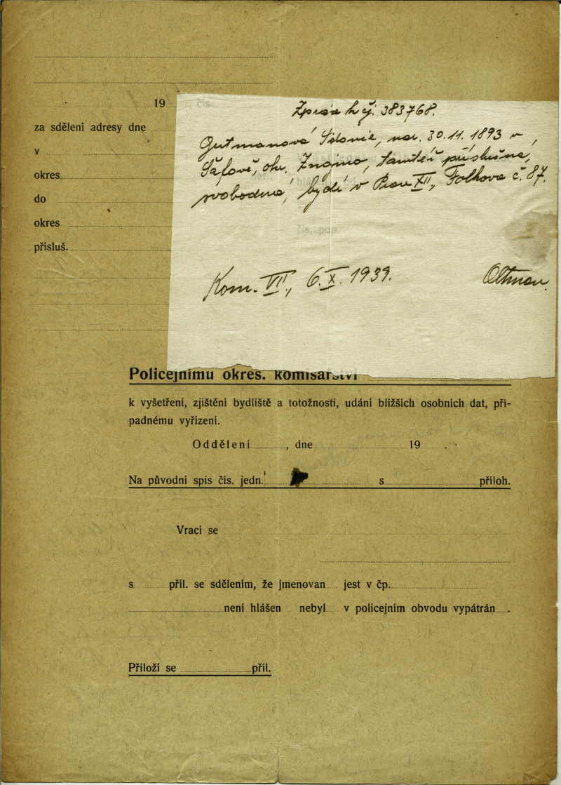 Národní archiv Praha > Policejní ředitelství v Praze > 1941-1950 > G > Guttmannová Zdeňka