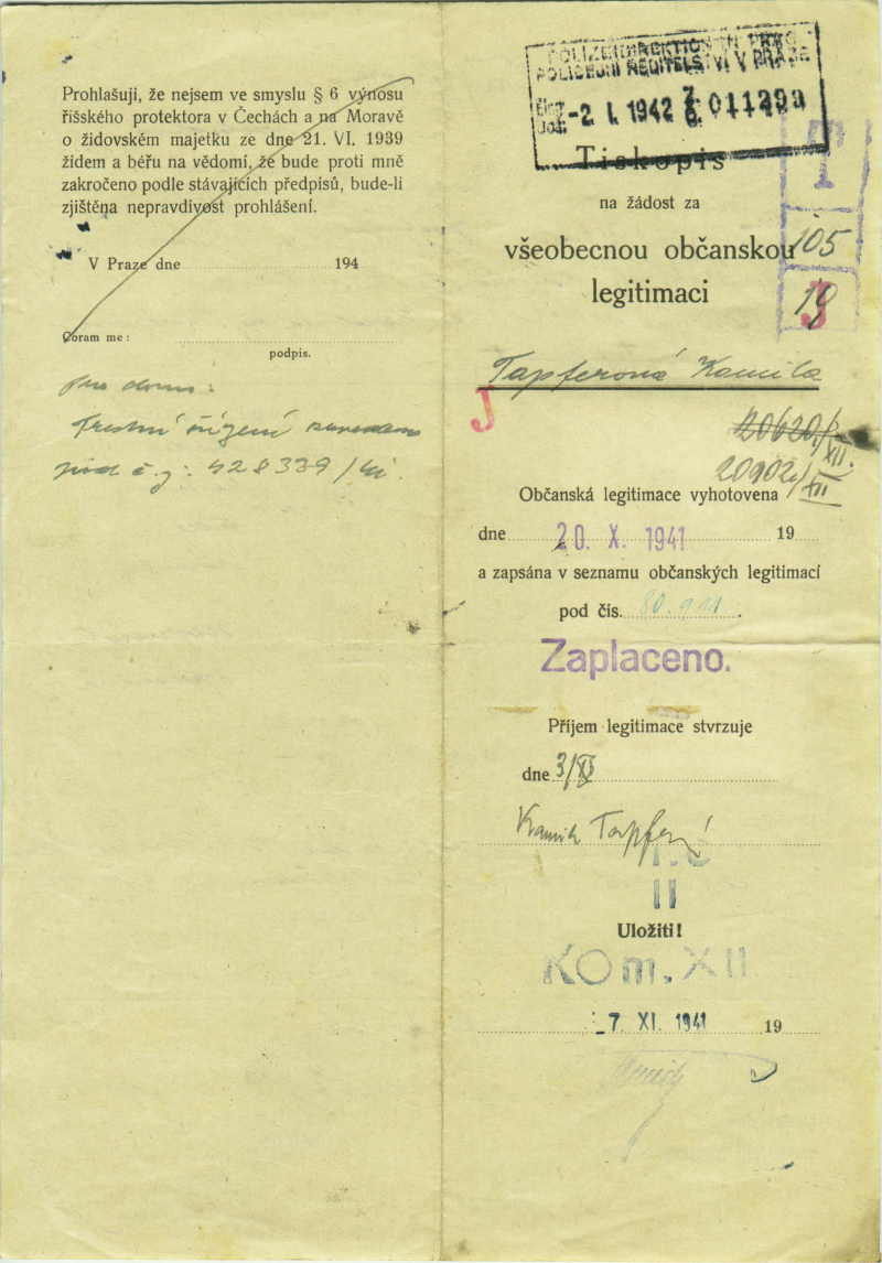 Tapferová Kamila: Žádost o vydání občanské legitimace
