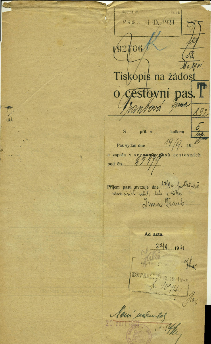 Národní archiv Praha > Policejní ředitelství v Praze > 1931-1940 > T > Traubová Irma