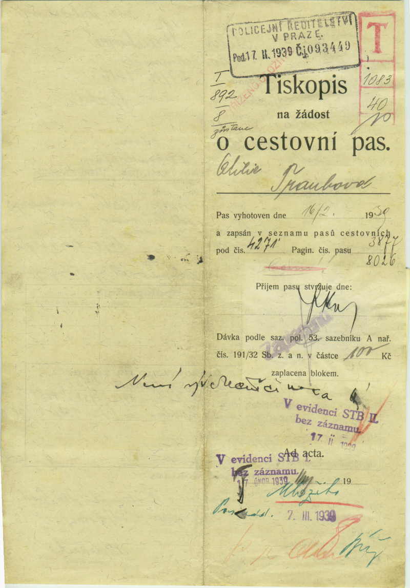 Traubová Otylie: Žádost o vydání cestovního pasu