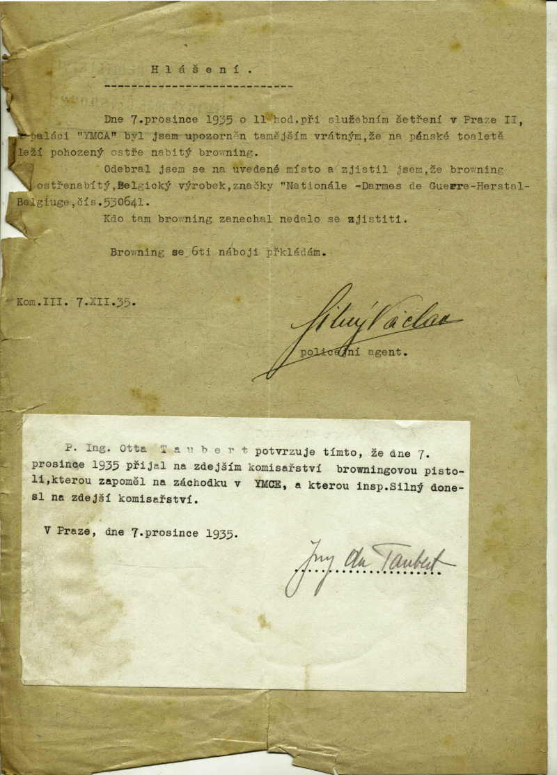 Tauber Otto: Nález zbraně