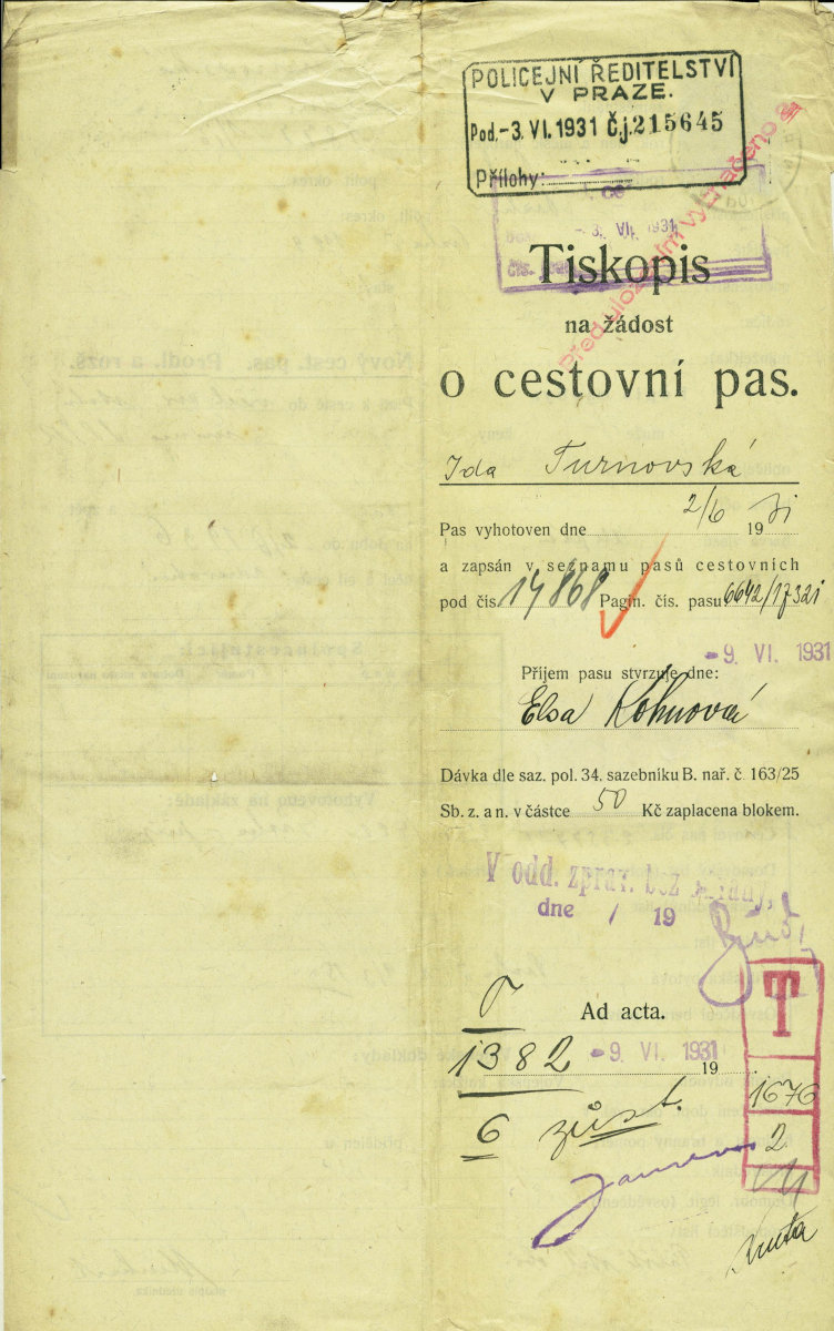 Turnovská Ida: Žádost o vydání cestovního pasu