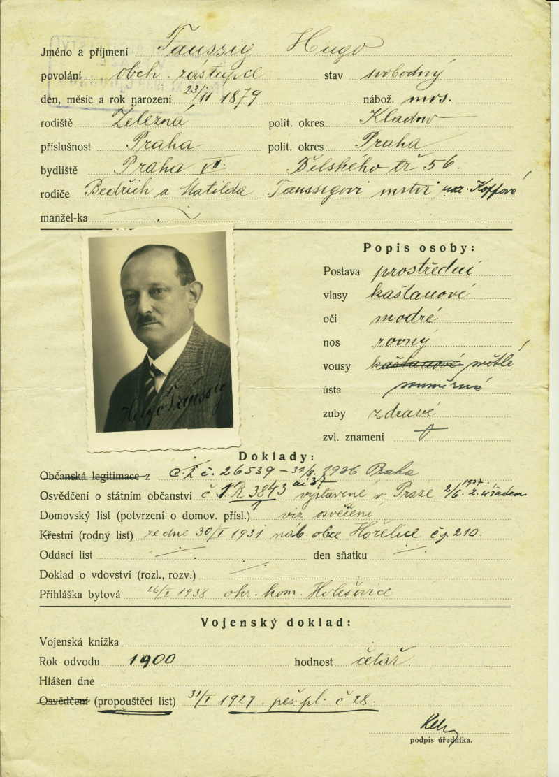 Taussig Hugo: Žádost o vydání občanské legitimace