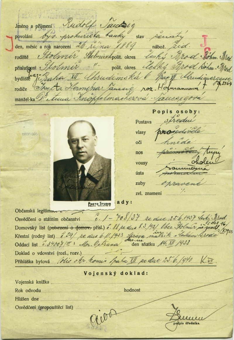 Taussig Rudolf: Žádost o vydání občanské legitimace