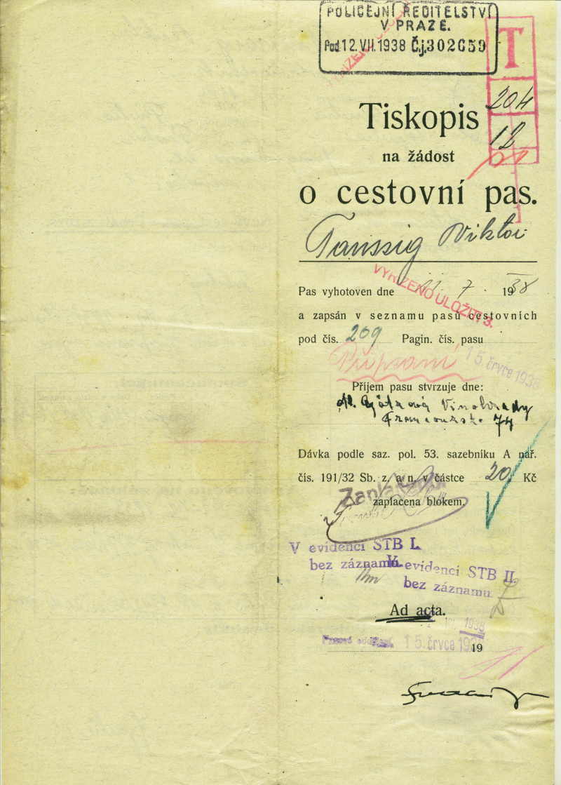 Taussig Viktor: Žádost o připsání dítěte do cestovního pasu