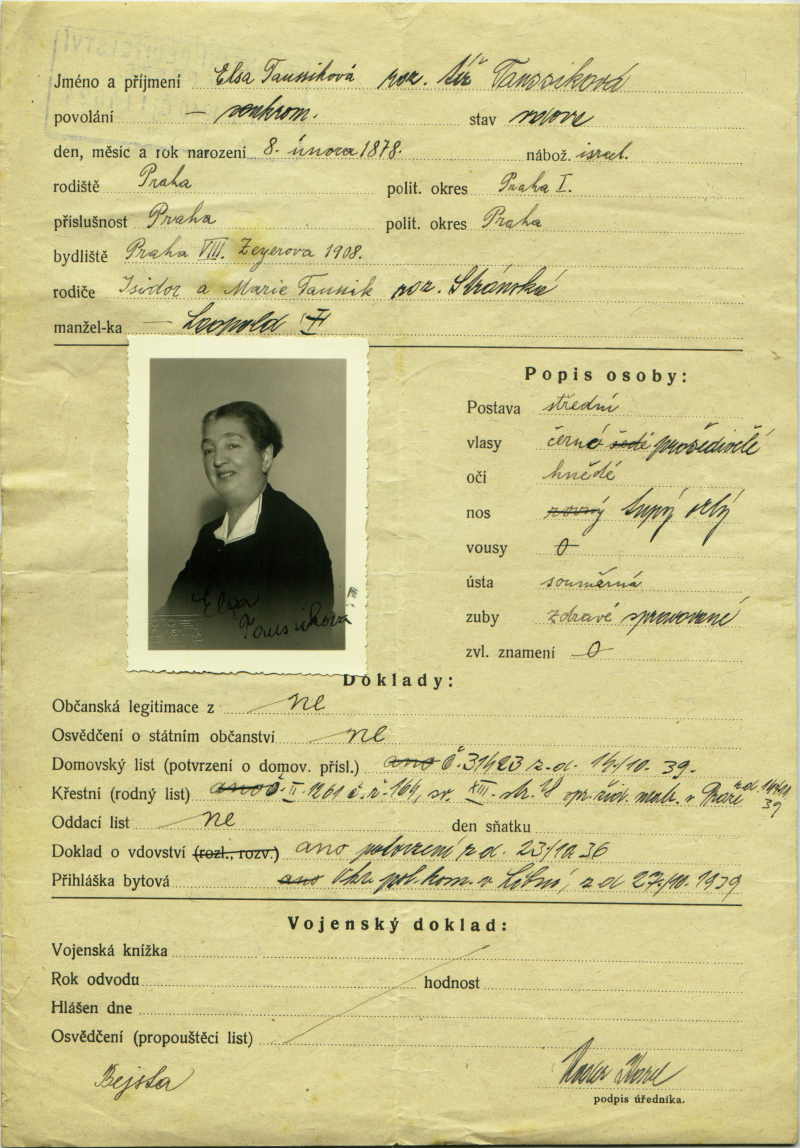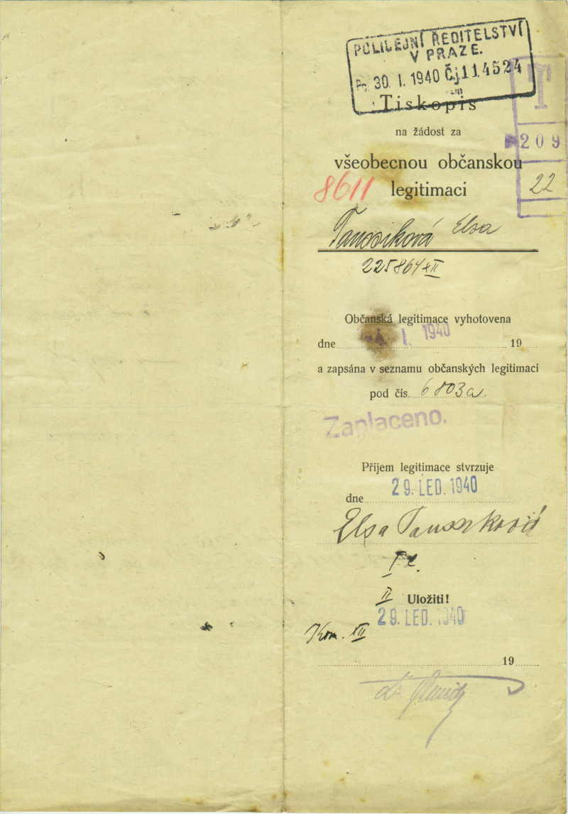 Taussiková Elsa: Žádost o vydání občanské legitimace