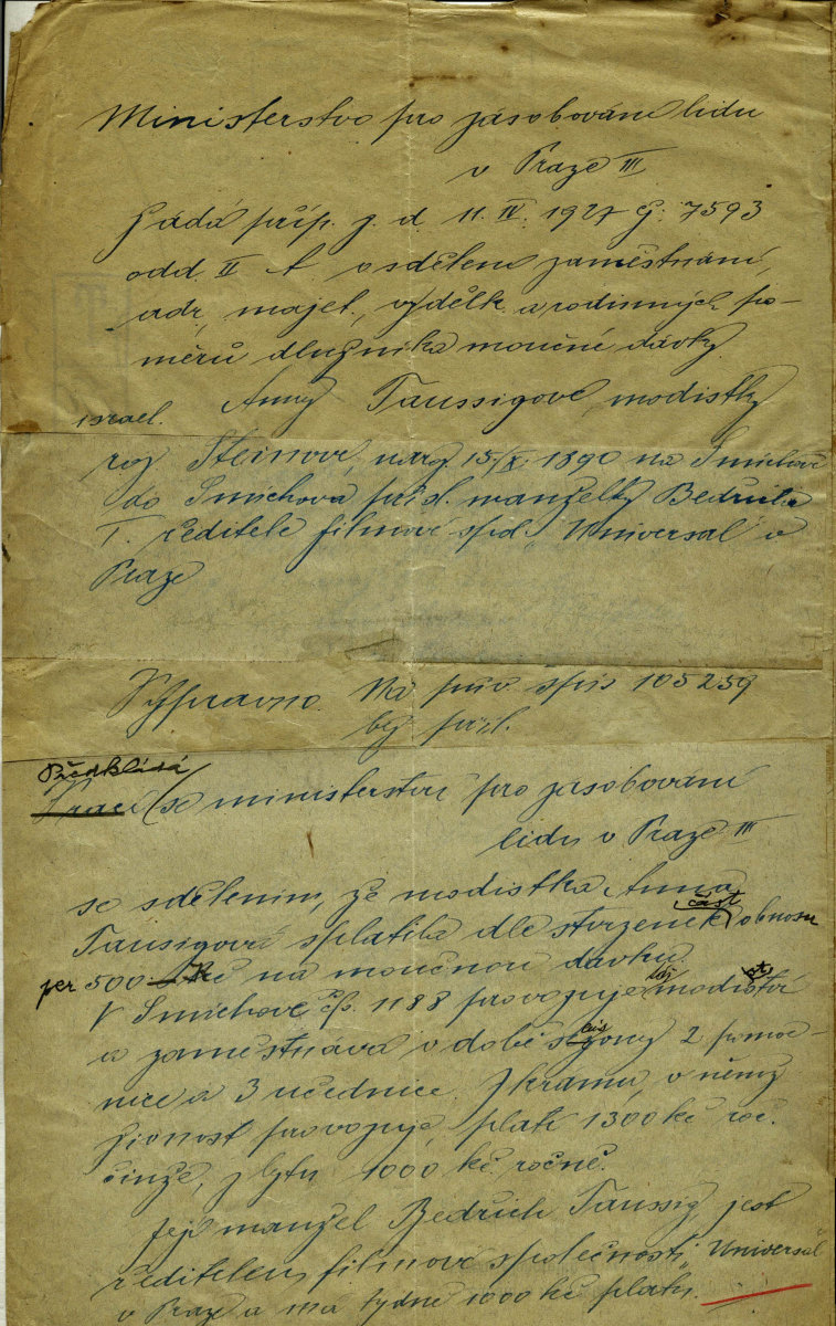 Taussigová Anna: Šetření o rodinných, majetkových a výdělkových poměrech