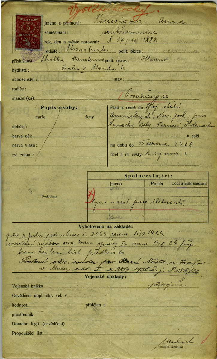 Taussigová Anna: Žádost o změnu v cestovním pasu