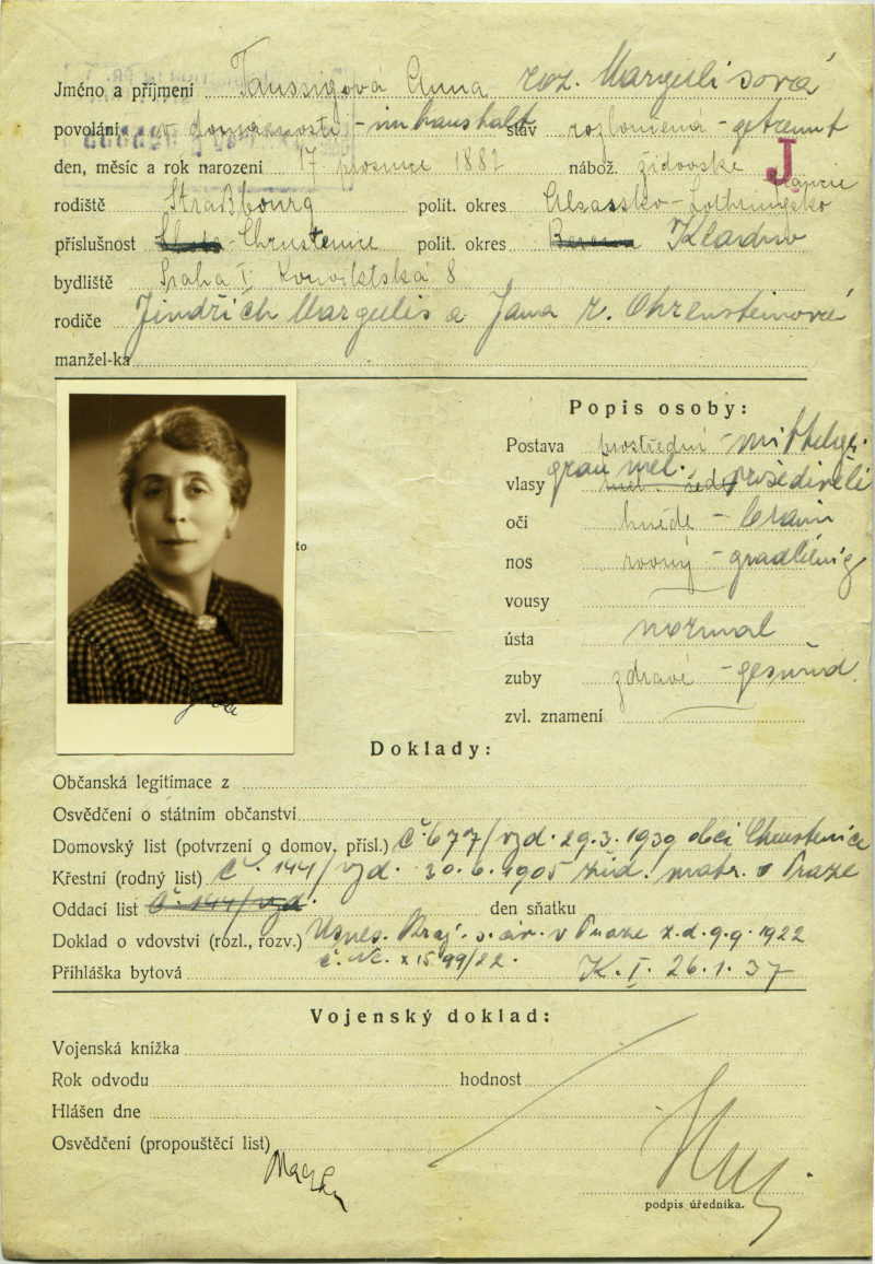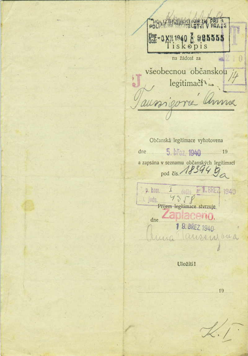Taussigová Anna: Žádost o vydání občanské legitimace