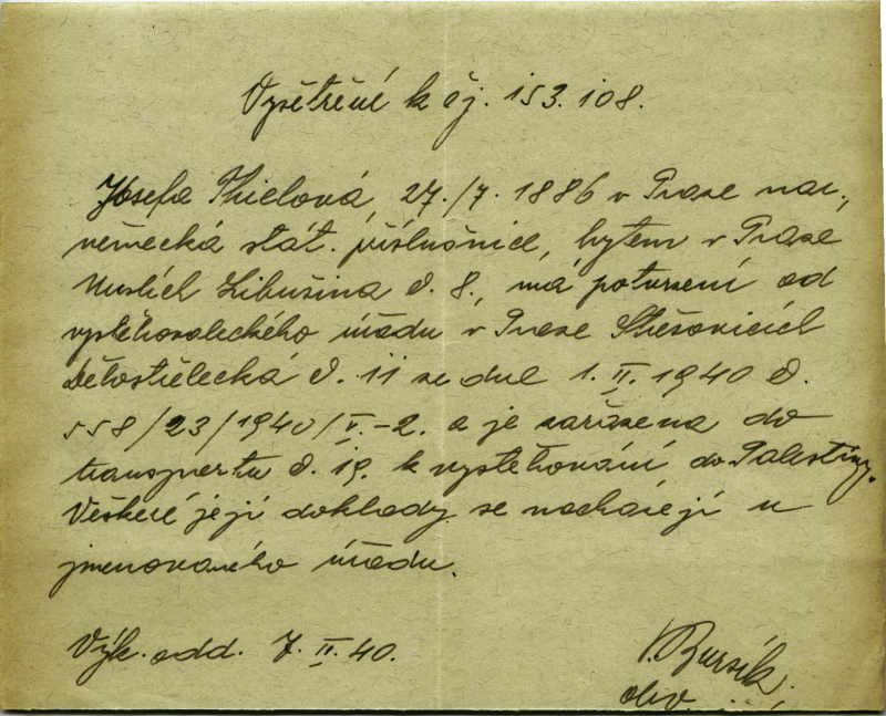 Thielová Josefina: Zařazena k vystěhování do Palestiny