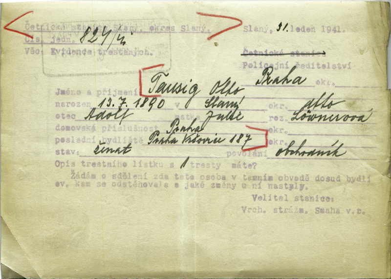 Taussig Kamil Otto: Šetření o pobytu