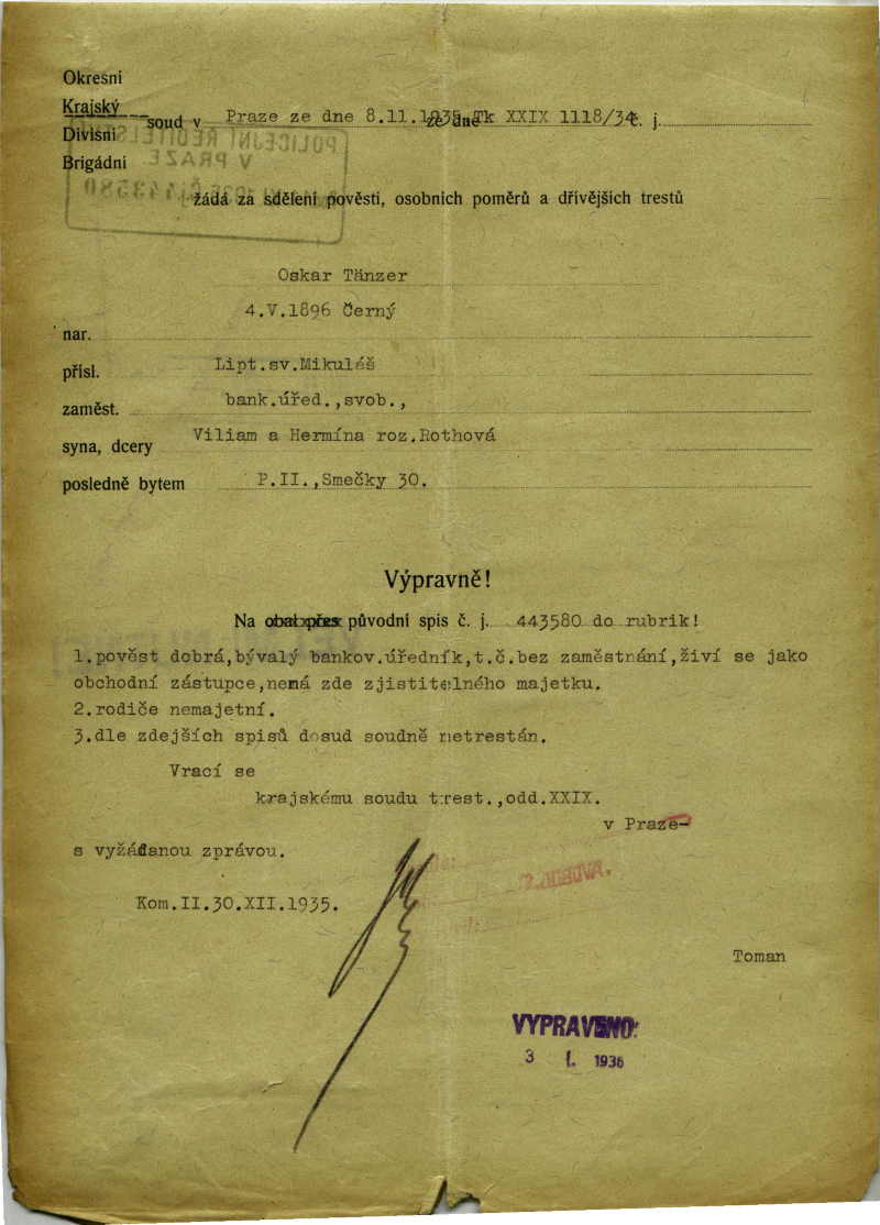 Národní archiv Praha > Policejní ředitelství v Praze > 1941-1950 > T > Tänzer Oskar