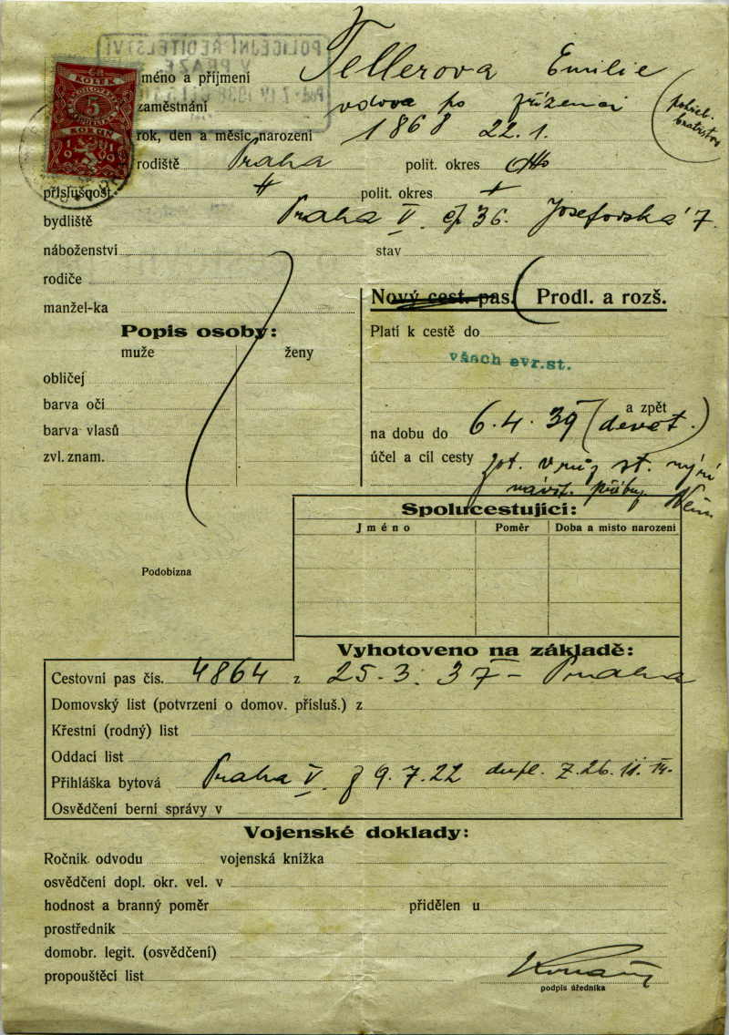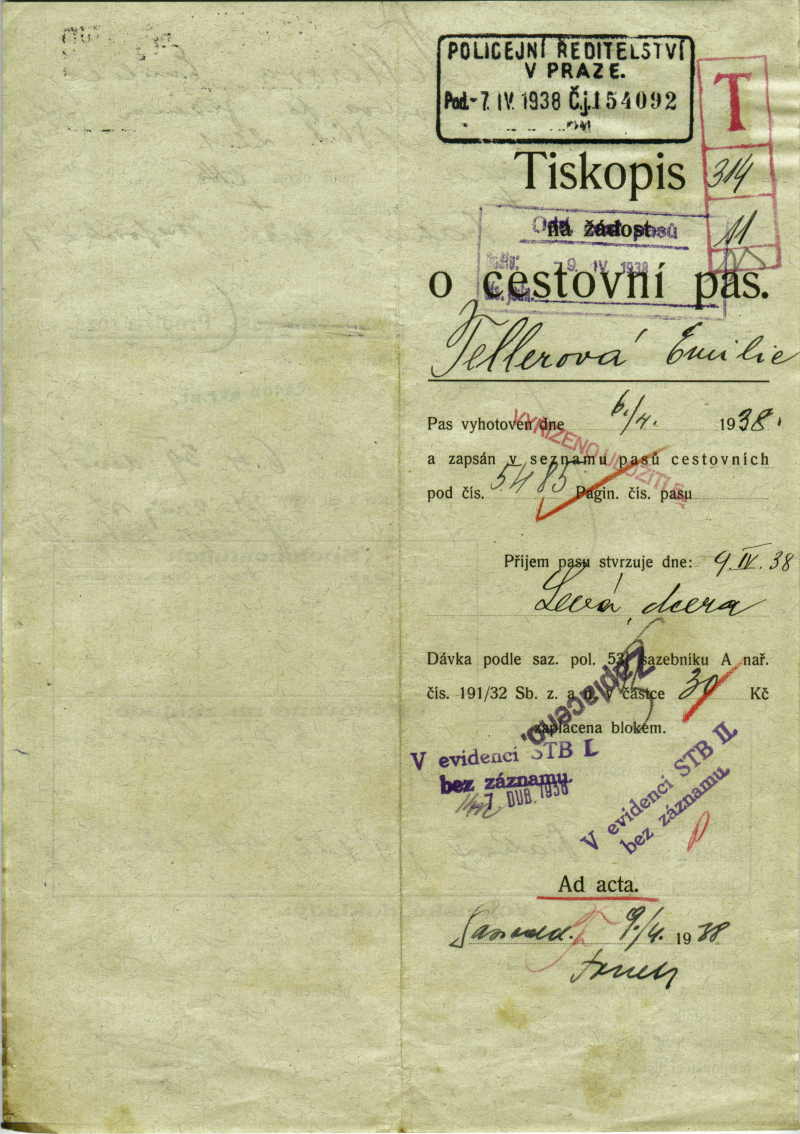 Tellerová Emilie: Žádost o změnu v cestovním pasu