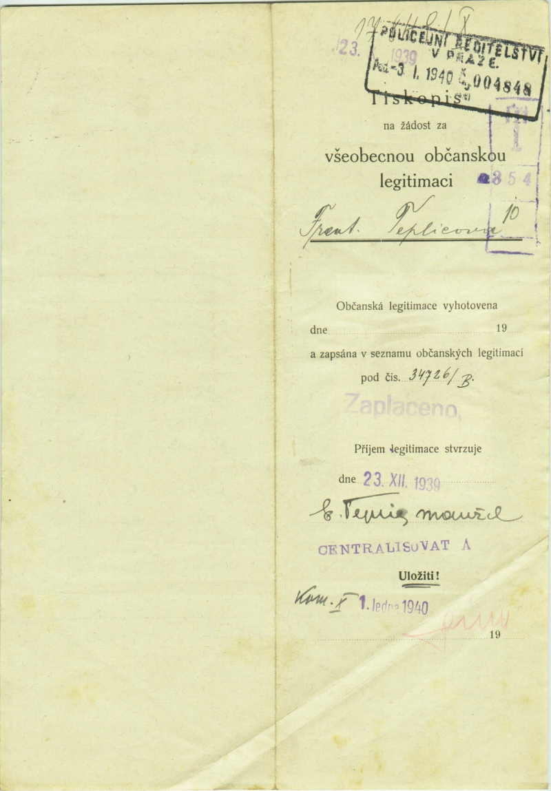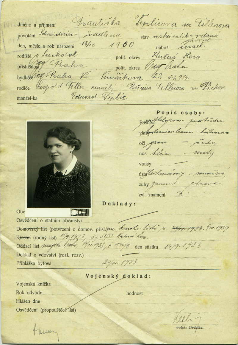 Teplicová Františka: Žádost o vydání občanské legitimace